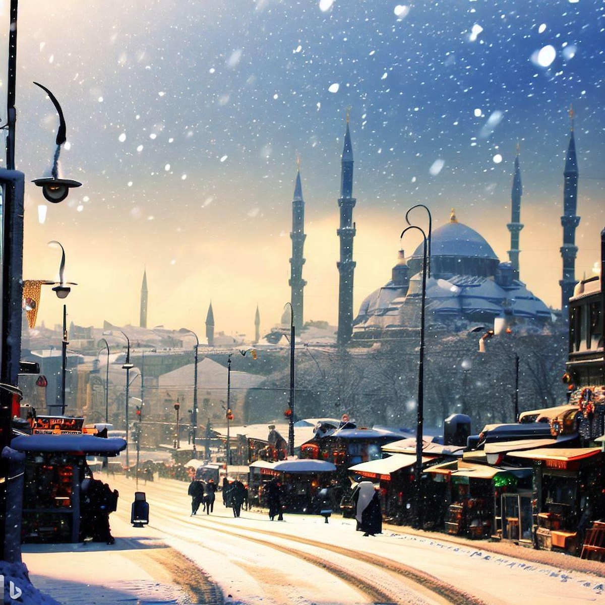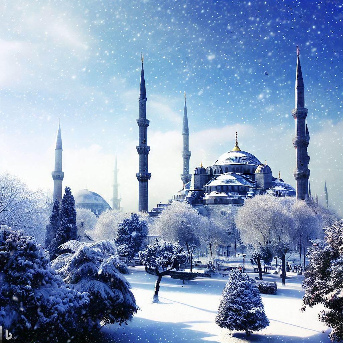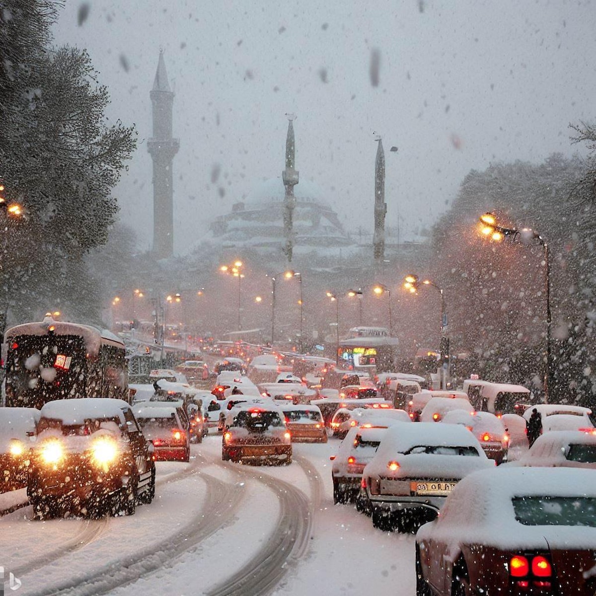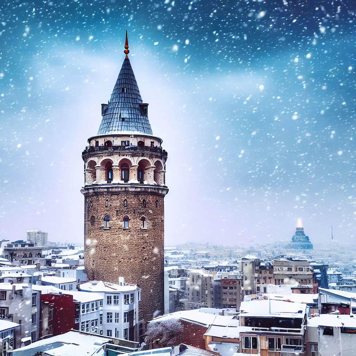Biz de İstanbul'u kar manzarasız bırakmak istemedik ve DALL-E'ye başvurarak ondan İstanbul için kar manzaraları oluşturmasını istedik.