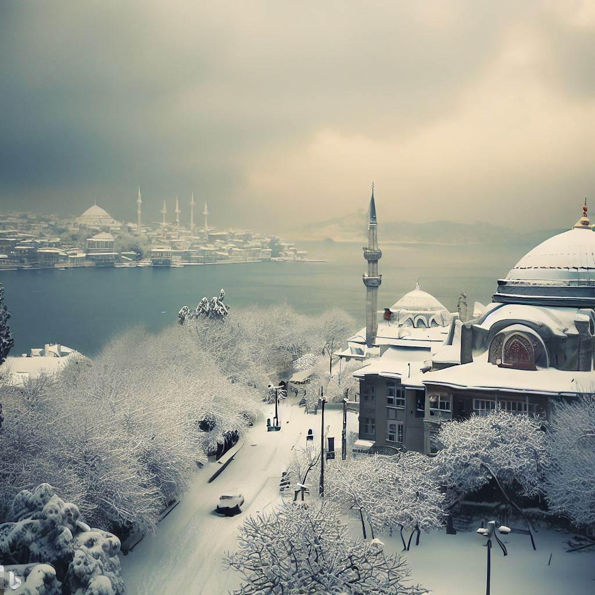 DALL-E'nin gözünden İstanbul'da kar manzaraları