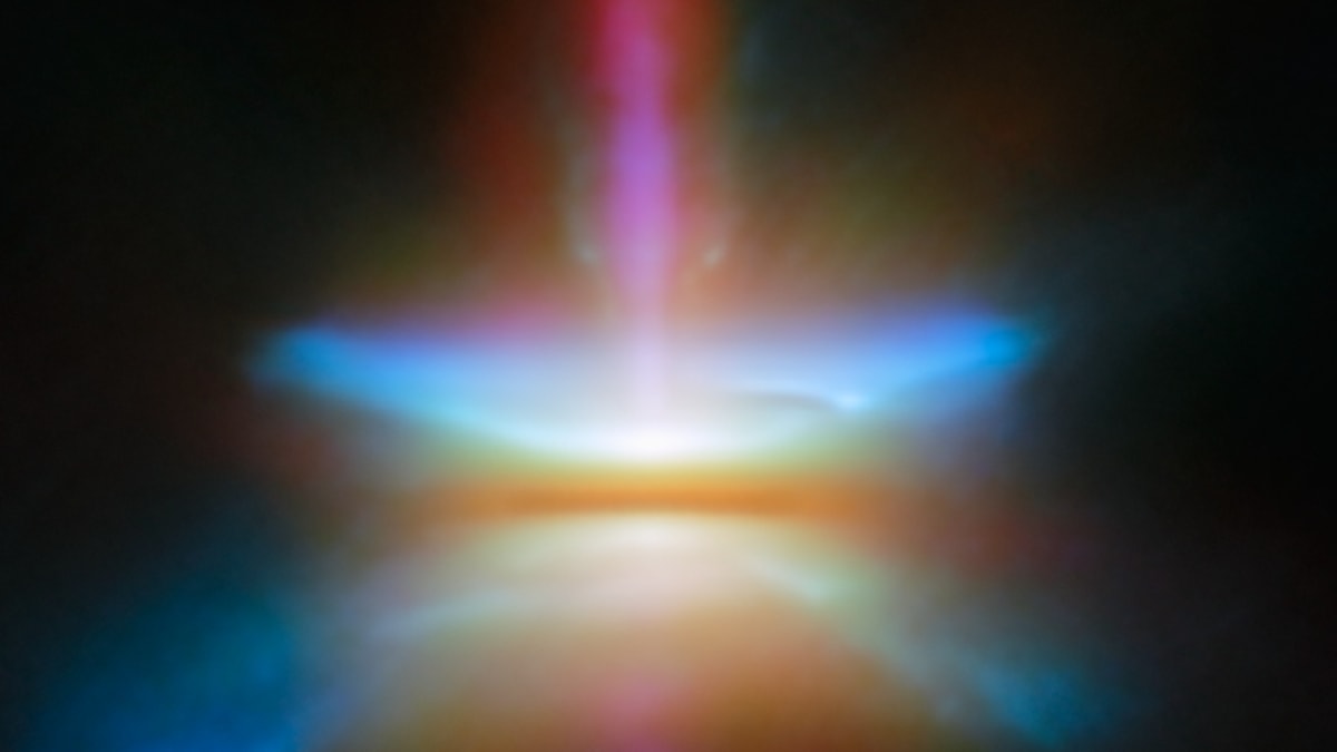 Bu disk, gaz ve tozdan oluşuyor ve yıldızın büyümesini sağlıyor. Görüntüde, diskten fışkıran bir jet ve konik şekilde dışarı akan gaz ve toz bulutları da görülebiliyor.