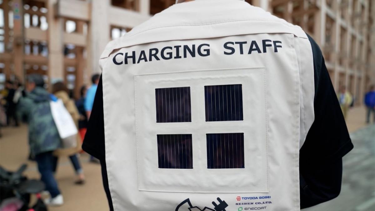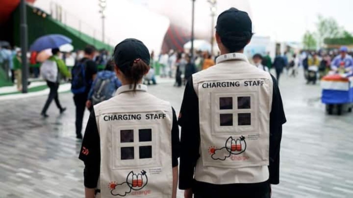 Osaka'daki Expo 2025 fuarında personel, sıcağın etkilerini azaltmak için ultra ince güneş panelleriyle donatılmış özel güneş enerjili yelekler giyiyor.