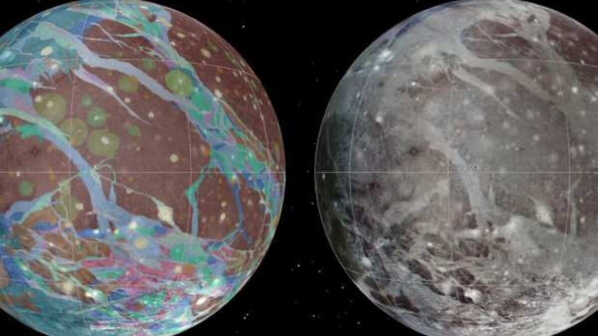 NASA'nın Juno uzay aracının çektiği fotoğraflarda, kraterlerin yanı sıra yüzeydeki bazı uzun çizgiler görülebiliyor. Bilim insanları, bu çizgilerin teknonik hareketliliği gösterdiğini tahmin ediyor.