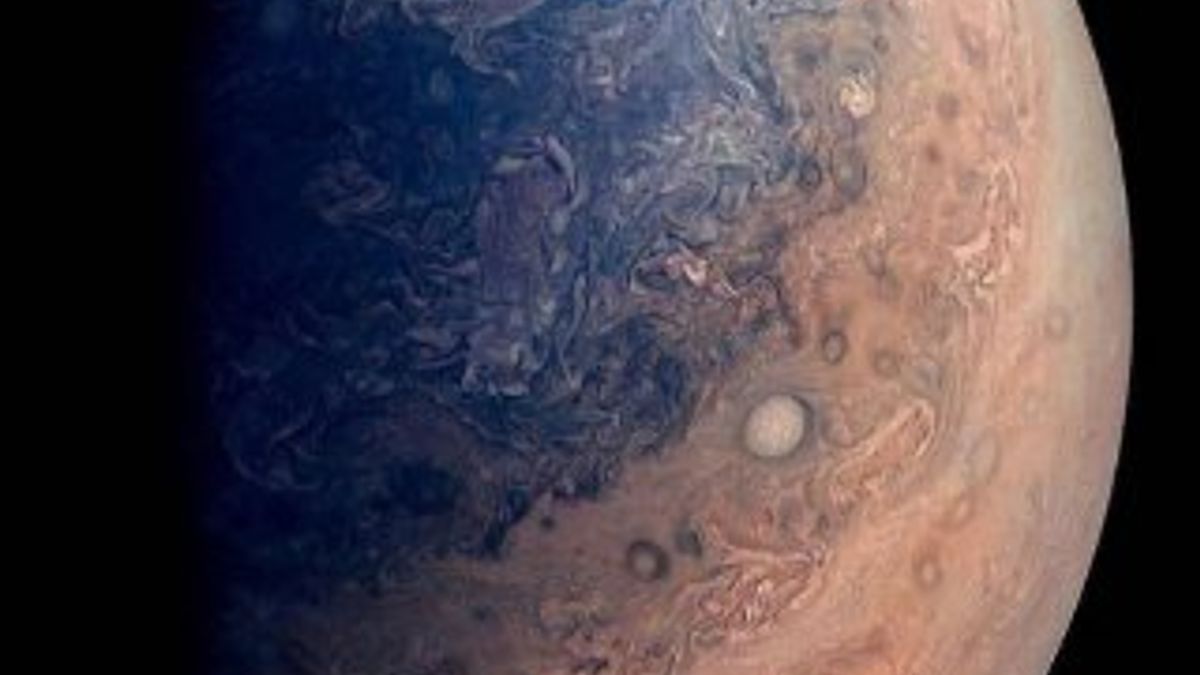 Jüpiter'in güney kutbunun yüksek çözünülürlüklü fotoğrafı, amatör astronom Gabriel Fiset tarafından oluşturulmuş. Gezegenin atmosferinde çok sayıda dev fırtına görmek mümkün.