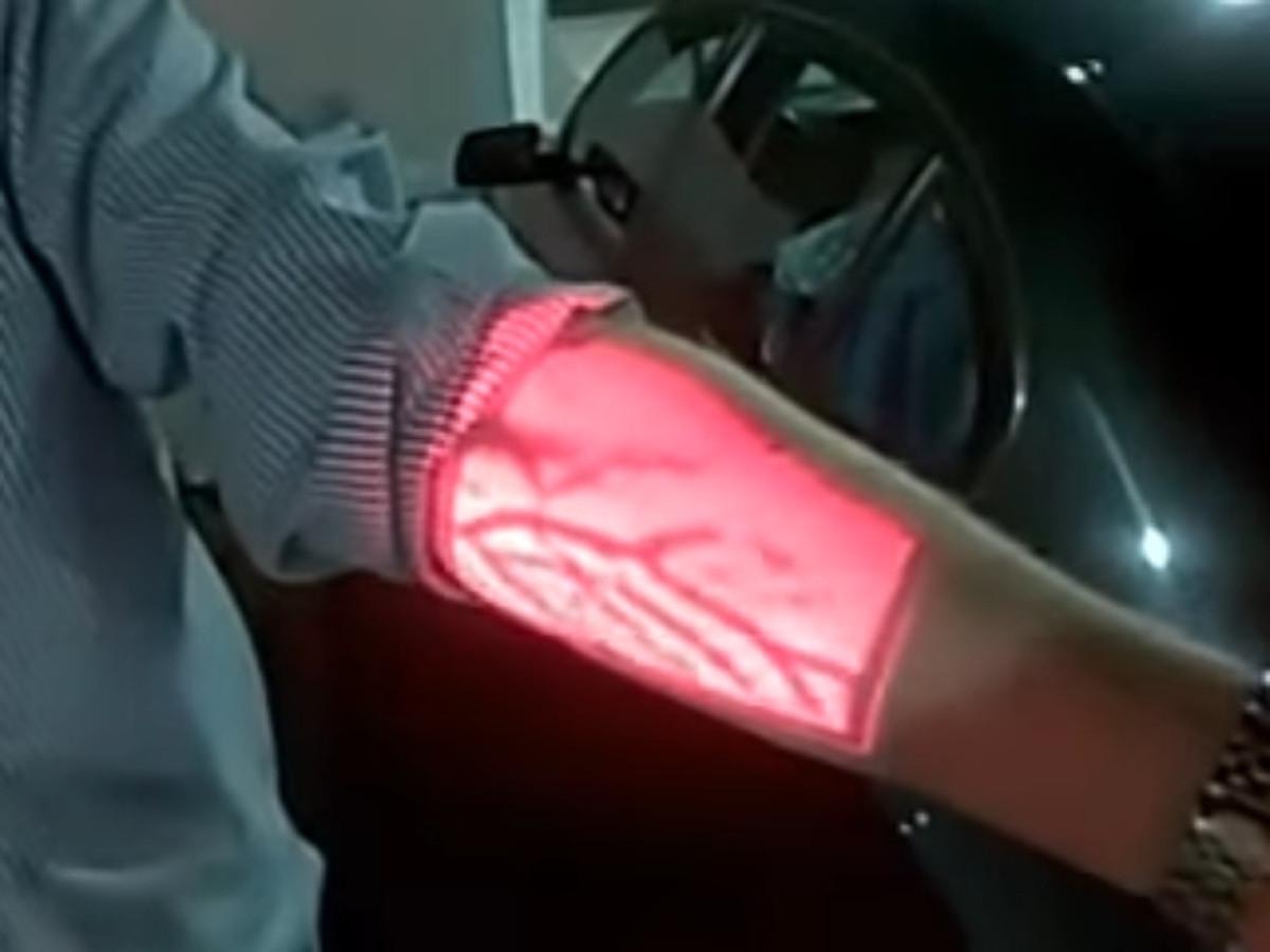 Doktorlar ve gece kulüpleri bunu kendi avantajlarına kullanıyor. Hemşireler ve doktorlar, enjeksiyon ve kan alma amaçlı damarları tespit etmek için kırmızı renkte parlayan (700 nm) veya kızılötesi ışık (760 ila 1 milyon nm) bir damar bulucu kullanabilirler. (Yukarıdaki görsel.)