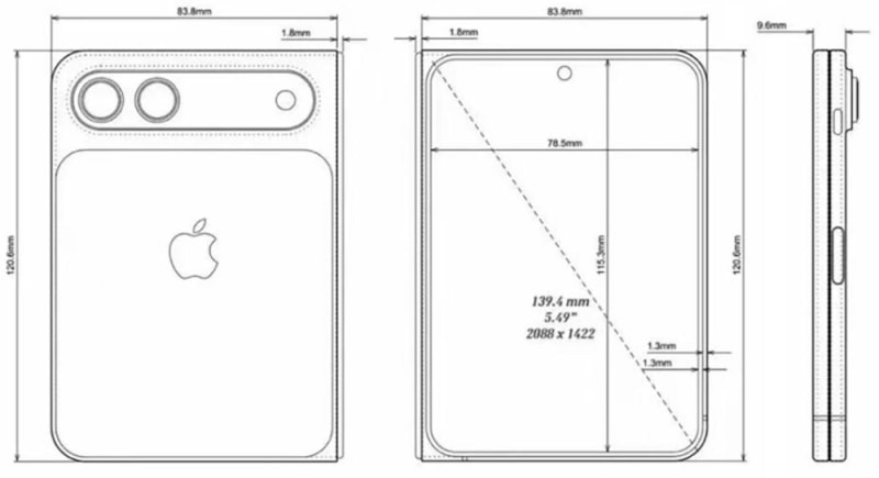 Sızdırılan verilere göre cihaz katlandığında 83,8 milimetre genişliğe, 120,6 milimetre yüksekliğe ve 9,6 milimetre kalınlığa sahip olacak.