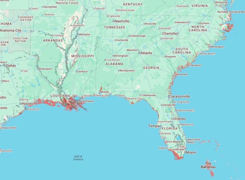 New Orleans'tan Galveston, Teksas'a kadar uzanan sahil şeridi, Florida'da nüfusun yoğun olduğu Miami, Tampa, Orlando, Jacksonville ve Key West gibi bölgeler tehdit altında.