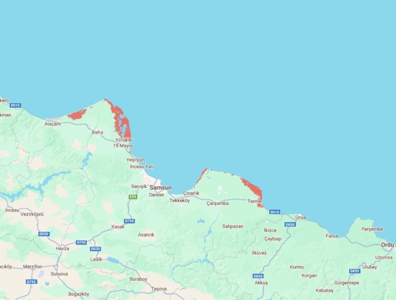 Karadeniz bölgesinde ise başta Samsun ve Ordu olmak üzere bazı kıyı bölgeleri risk altında.