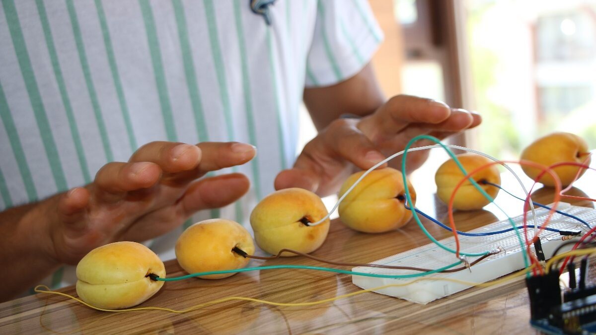 Teknolojiye küçük yaşlardan beri ilgi duyduğunu belirten Ucun, "Bu projede aslında Elazığ Baskil’e has olan kayısıyı kullandım, kayısıyı kullanarak bir piyano yaptım. Her sesin frekans aralığı var. Örneğin, 'Do' sesinin frekansını internetten araştırarak '363' olduğunu öğrendim ve bunu ardunio üzerinde bulunan bir analog pine tanımladım. Yazılımda ise algoritma kısmına A1 ile eşleştirerek 363 frekansını ayarlayıp kayısıya bastığınızda algoritma ilk başta ardunioya geliyor. Oraya az da olsa insanın içinde iletkenlik gittiğinde denetleyiciye giden mesaj hoparlöre iletiliyor. Bunun sonucunda hangi frekansın hangi kayısıya bağlı olduğunu saptıyor. 8 notaya kadar bu nota aralığında hangi frekansı tanımladıysam veya hangi kayısıya bastıysak o şekilde ses çıkarıyor." dedi.
