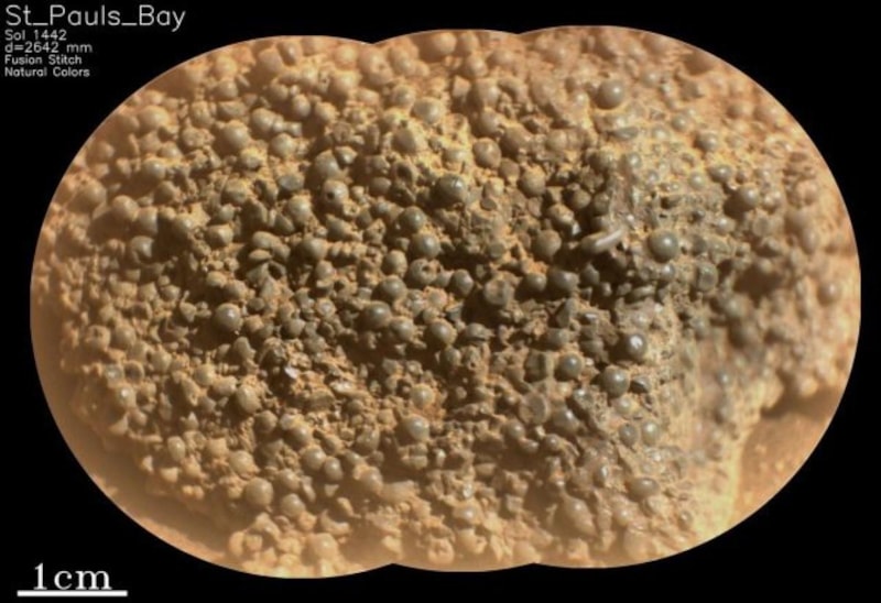 Bu kaya, yüzlerce küçük, koyu gri renkli kürecikten oluşuyor ancak bilim insanları, bu yapının nasıl oluştuğuna dair kesin bir açıklama yapabilmiş değil. Dünya'da 'botriyoidal' olarak bilinen ve yaygın olan bu tür kristal kümelerinin Mars’taki oluşum sürecinin farklı olabileceği düşünülüyor. Bazı bilim insanları, bu tür yuvarlak yapılarının erimiş kayaçların hızla soğuması sonucu meydana gelebileceğini öne sürüyor. Bu süreç, bir gök taşı çarpması veya volkanik patlamalar sırasında gerçekleşebilir. Benzer şekilde, Jezero Krateri'ndeki ‘patlamış mısır’ görünümündeki kayaların da suyla etkileşim sonucu oluştuğu tahmin ediliyor.
