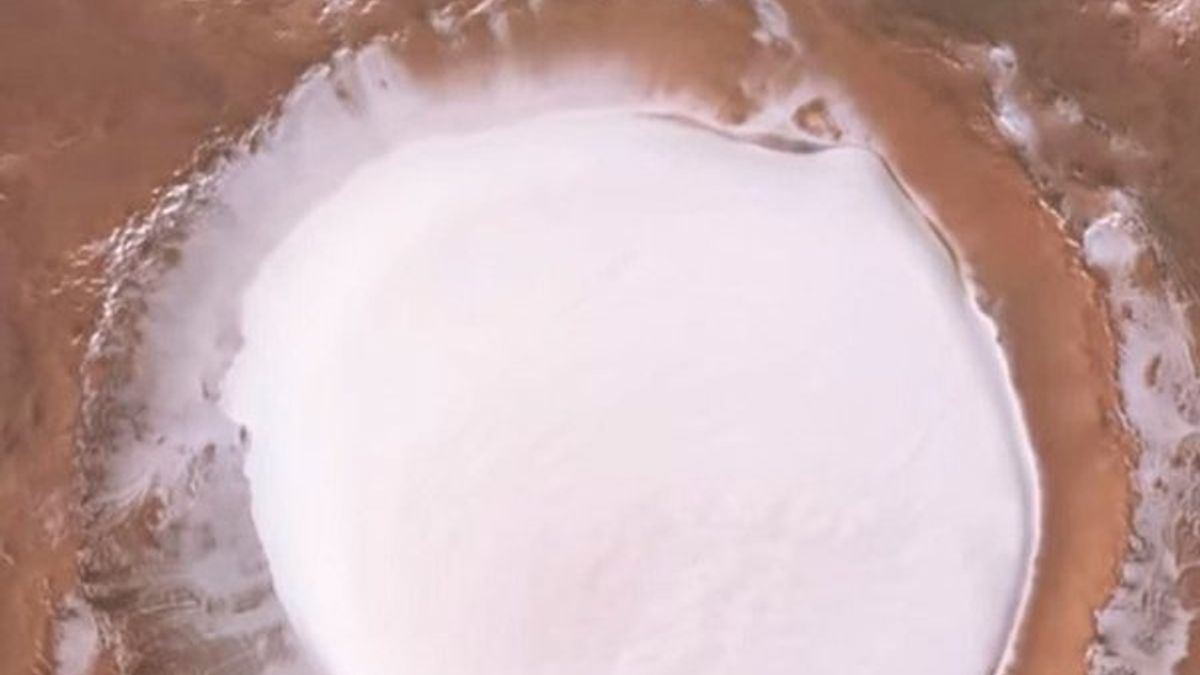 Mars'ın kuzey kesiminde bulunan Korelev Krateri, tamamen su buzuyla kaplı ve etrafında kum tabakası yer alıyor.