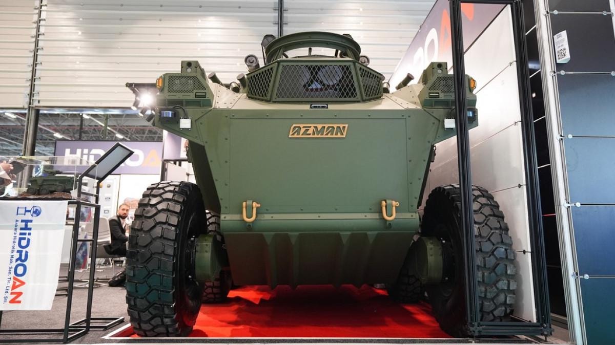 Bu dikkat çeken ürünlerden biri de Hidroan tarafından geliştirilen "Yüksekliği Ayarlanabilen 6x6 Taktik Tekerlekli ve Hidrolik Tahrikli Modüler Kara Aracı Azman" oldu.