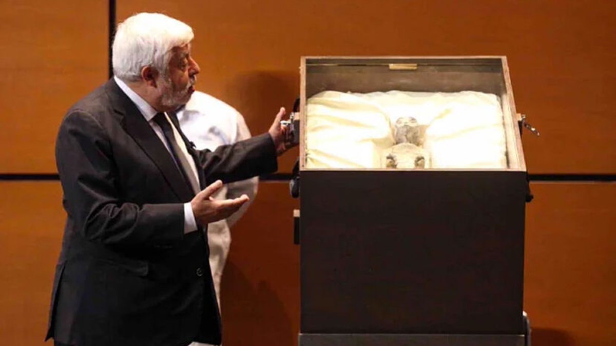 Gazeteci ve ufolog Jamia Maussan'ın Meksika Kongresi'ndeki oturumda uzaylılara ait olduğunu iddia ettiği fosilleri göstermesi, bilim dünyasını harekete geçirdi.