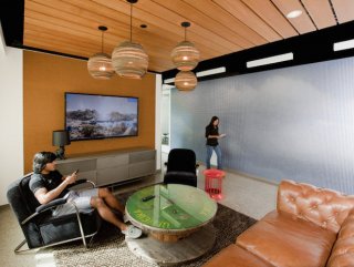 Microsoft'un Washington'daki 'The B44 Microsoft Building' ofisinde çalışanlar için geniş dinlenme odaları ve oyun odaları bulunuyor.