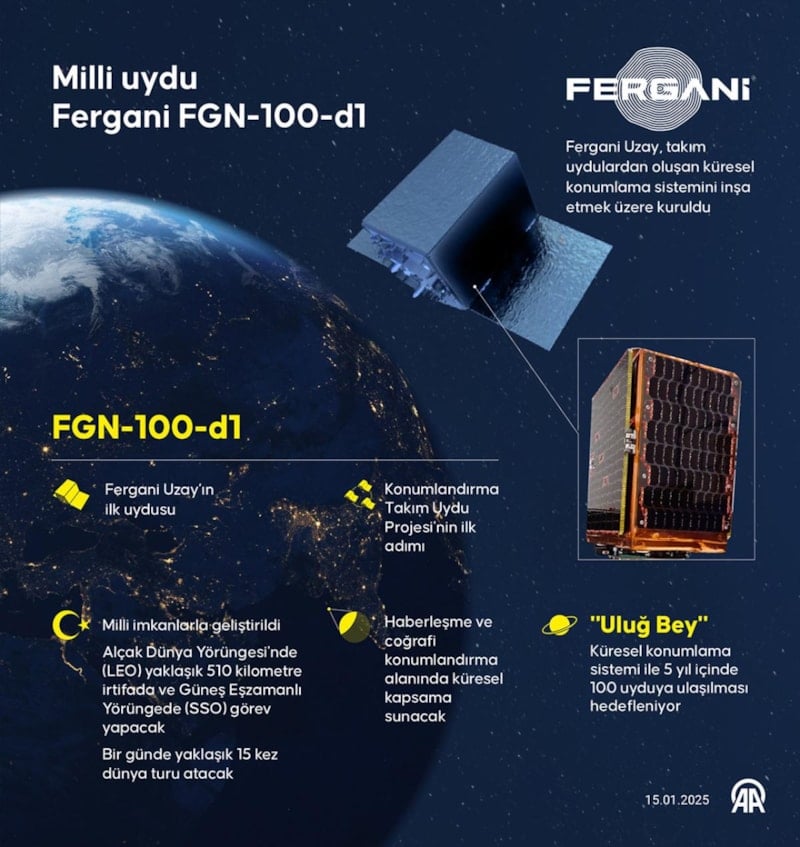 Fergani mühendislerinin uzmanlığıyla tamamen milli imkanlarla geliştirilen FGN-100-d1 uydusu, Alçak Dünya Yörüngesi'nde (LEO) yaklaşık 510 kilometre irtifada ve Güneş Eşzamanlı Yörüngede (SSO) görev yapacak. Milli uydu yörüngede 7,6 km/saniye hızla hareket ederek bir günde yaklaşık 15 kez dünya turu atacak.