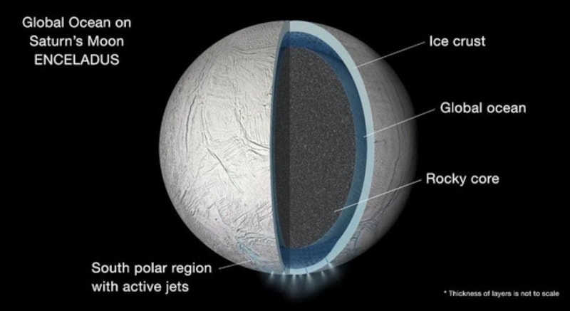 Bilim insanları, Cassini uzay aracının, 2005'te Satürn'ün çevresinde dönen uydunun buzlu yüzeyinden sızıntı yapan sıcak su kaynaklarını tespit etmesinden bu yana Enceladus'un dışarıdan gelen organizmalar için "potansiyel bir ev sahibi olup olamayacağını" araştırmayı sürdürüyor.