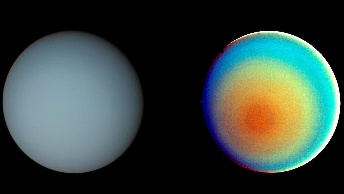 NASA'nın Voyager 2 uzay aracı, 1986'da buz devinin yanından geçerken güney kutbunun fotoğraflarını çekerek, kutup merkezindeki rüzgarların kutbun geri kalanından daha hızlı döndüğünü göstermişti.