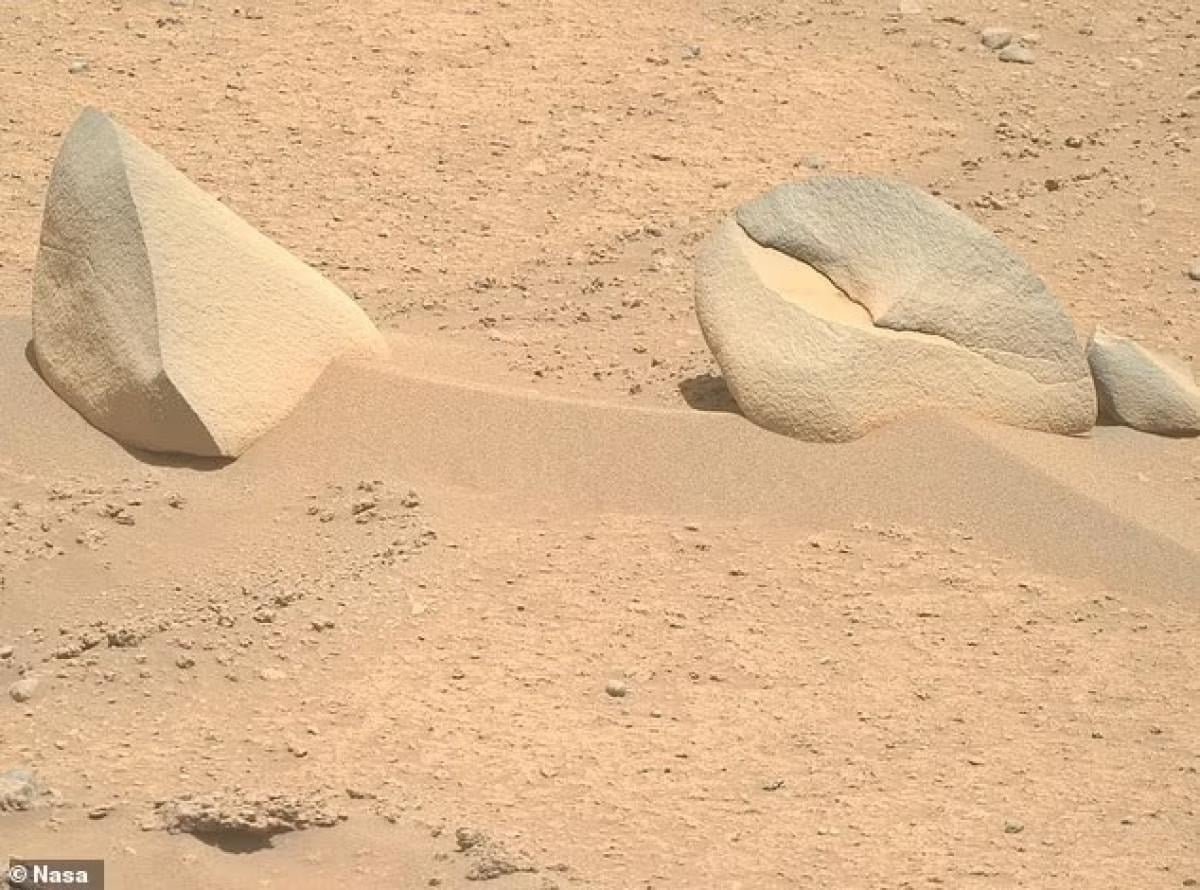 Bunun nedeni, araba boyutundaki robotun, köpekbalığı yüzgecine ve yengeç pençesine benzeyen iki ayrı kayanın görüntüsünü yakalamasıdır.