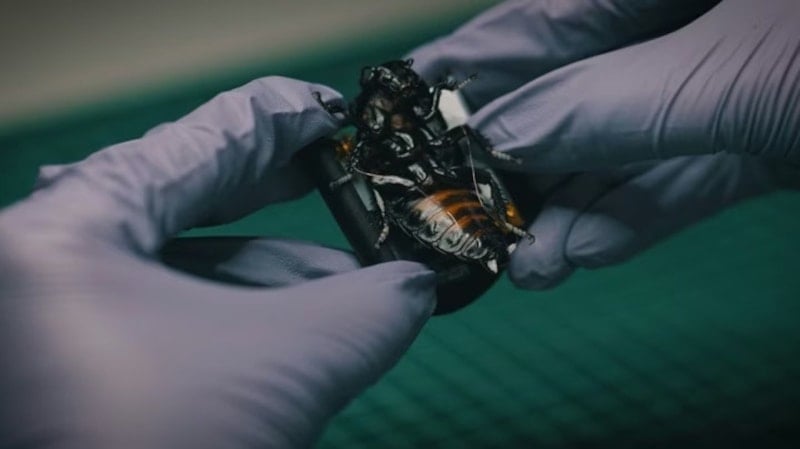 Madagaskar tıslayan hamamböceklerinin kullanıldığı sistemde, böceklerin üzerine sensör, uç yapay zeka ve şifreli iletişim modülleri içeren minyatür sırt çantaları yerleştiriliyor.