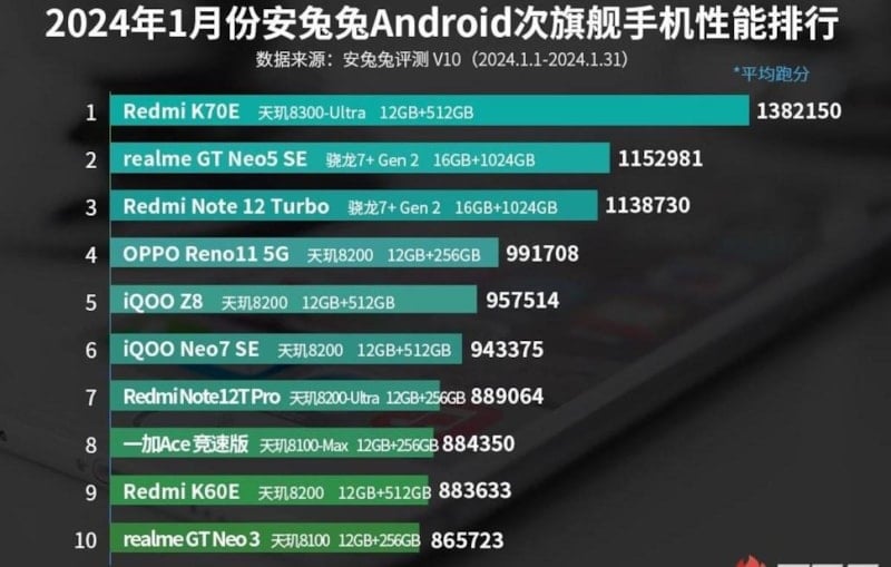 Akıllı telefon kıyaslama platformu AnTuTu, ocak ayının en güçlü Android telefonlarını açıkladı. İşte 2024 yılında zirvede olan telefonlar.