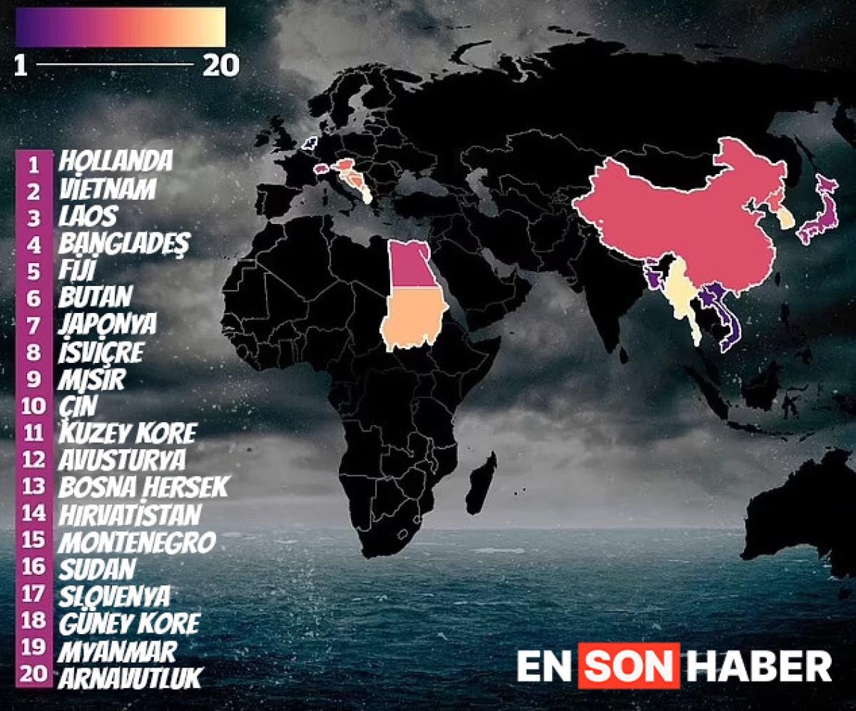 Listenin başında Hollanda yer alırken onu Vietnam, Güneydoğu Asya ülkesi Laos, Bangladeş ve Güney Pasifik Okyanusu'ndaki Fiji takip ediyor.
