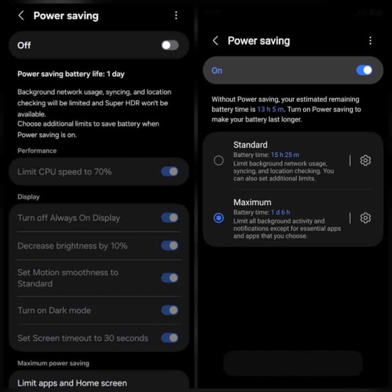 Samsung, One UI 8.5 güncellemesiyle güç tasarrufu özelliğini, kullanıcılara "Standart" ve "Maksimum" olmak üzere iki farklı ve özelleştirilebilir profil sunacak şekilde baştan sona yenileyecek.