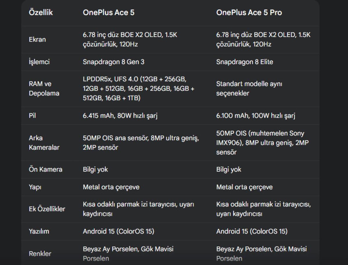 ONEPLUS ACE 5 SERİSİNİN ÖZELLİKLERİ