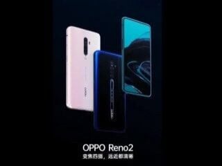 6,55 inç büyüklüğünde ve 20:9 en/boy oranına sahip bir ekranla satışa çıkan Oppo Reno 2, Qualcomm Snapdragon 730G işlemcisinden gücünü alıyor. 8 GB RAM ve 256 GB dahili depolamaya sahip telefonda 20W hızlı şarj destekli 4000 mAh batarya bulunuyor.