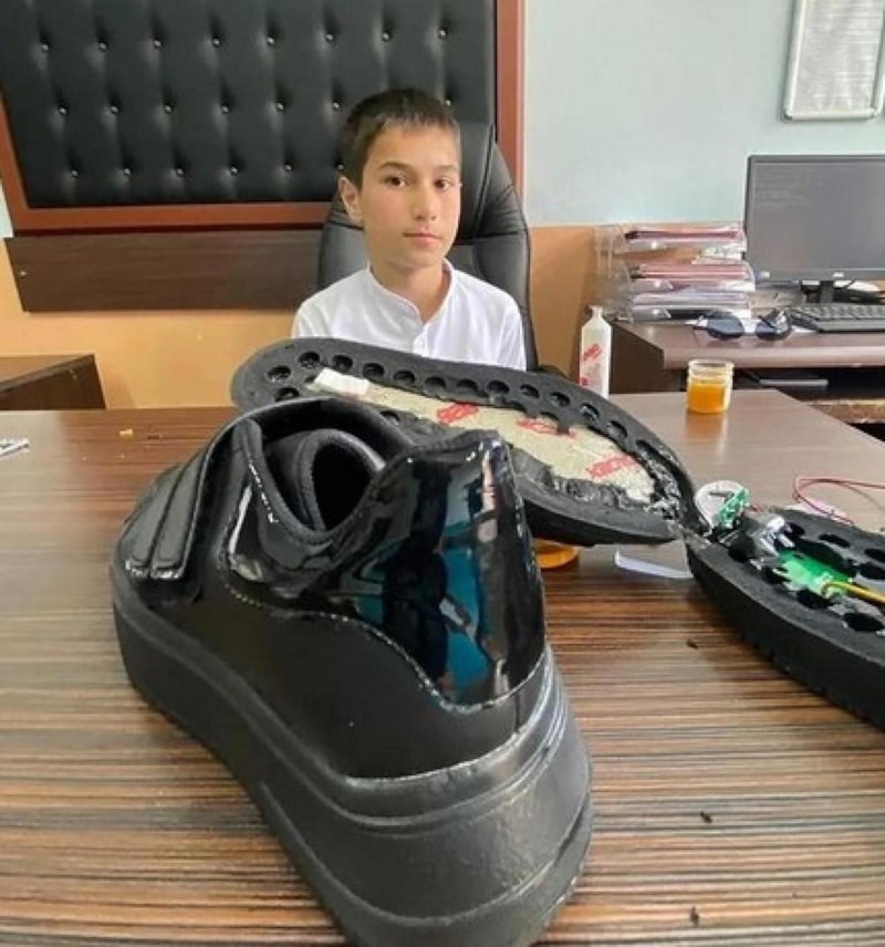 Talha, fen bilimleri öğretmeni Galip Kerim ile birlikte, köpekleri çocuklardan uzak tutacak bir ayakkabı tasarladı.