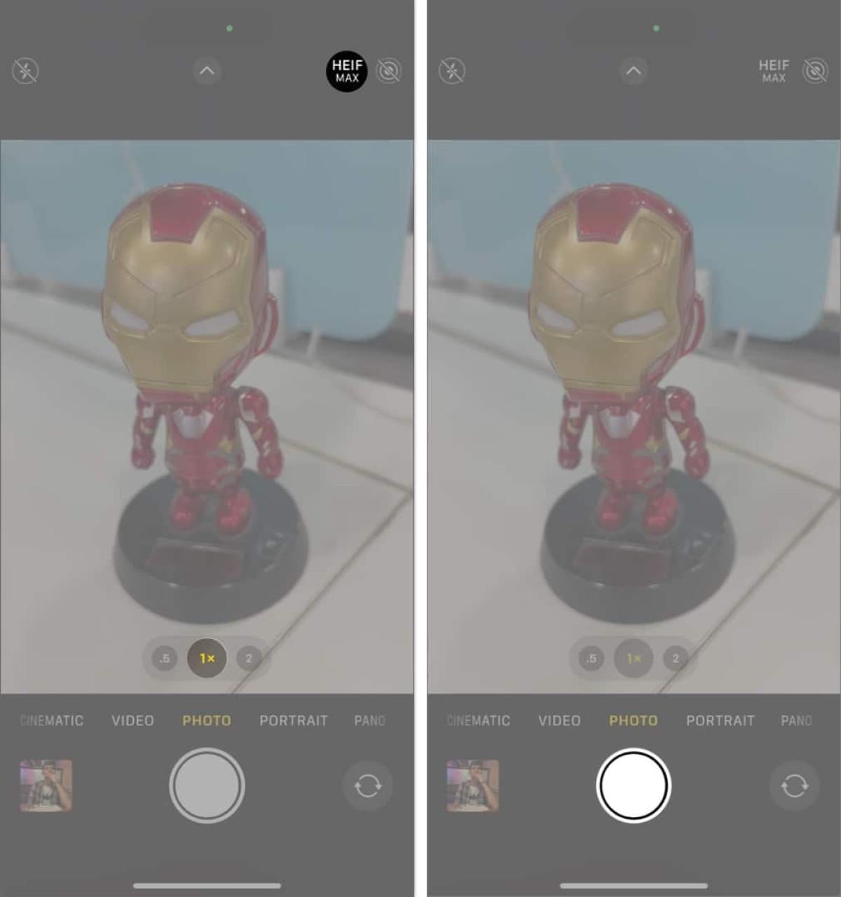 iPhone'unuzda Kamera uygulamasını açın. Sağ üst kısımda ProRAW özelliğinin üzerinin çizilmediğinden emin olun.