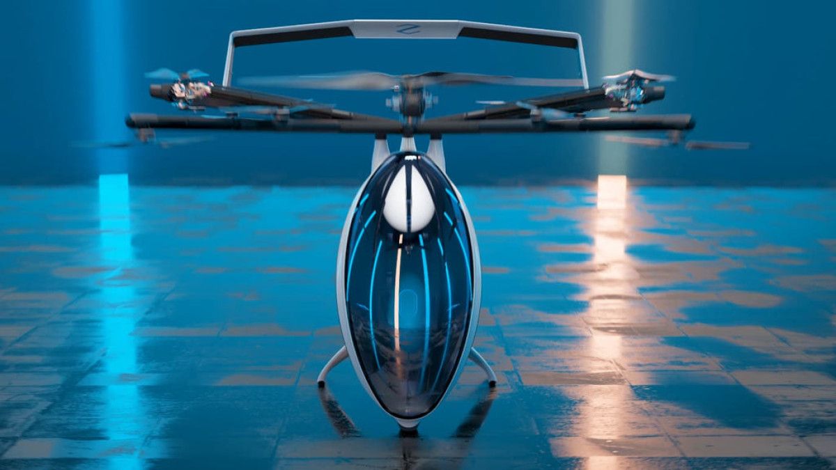 Uçan araç, hibrit güç aktarma organına sahip, yani yumurta şeklindeki gövdesinin üstünden uzanan altı rotorunu hareket ettirmek için yakıt ve elektrik gücünün bir karışımını kullanır.