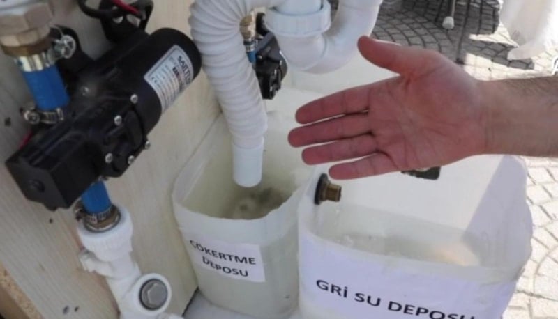 Biz bunu bina tesisatı olarak lavabo sularından ayırıp ayrı bir depoda biriktiriyoruz. İki farklı depo yapıyoruz. Birinde çökeltme yapıp kaba pisliklerden arındırıyoruz diğer depoda filtreleme işlemi yapılıyor. Gerekirse arıtma tesisatı da kullanılabilir. Az kullanılmış bu suları filtreleyip bu suyu sadece tuvalet temizliğinde kullanarak su tasarrufu sağlamış oluyoruz.