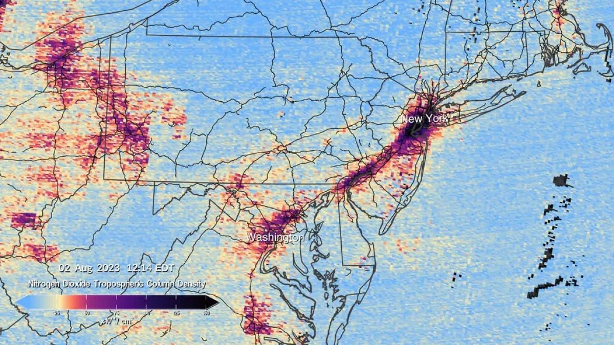 Görüntüler, büyük şehirlerin etrafındaki gazın açık sıcak noktalarını gösteriyor; trafiğin daha fazla olduğu sabah ve akşam saatlerinde daha yüksek seviyeler görülüyor.