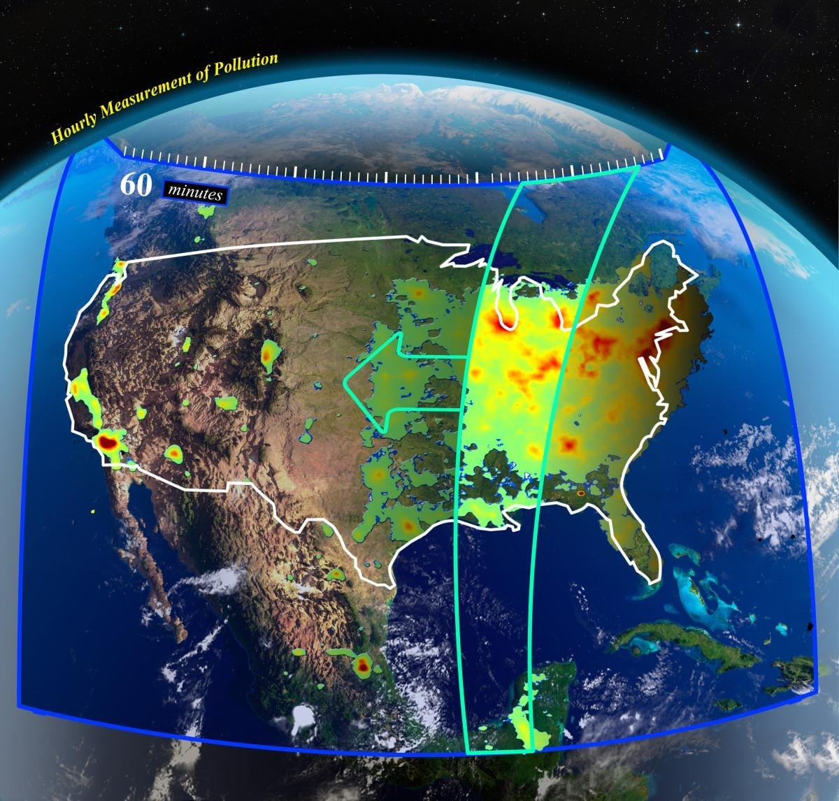 Cihaz, yörüngeye tam olarak yerleştikten sonra Kuzey Amerika kıtası üzerinde hava kirliliği kontrolü yapmaya başladı.