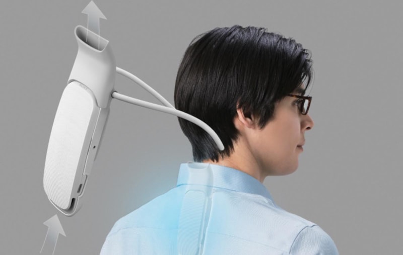 Reon Pocket 5 isimli portatif klima, kullanıcının ense-sırt bölgesine takılarak serinlemesine yardımcı oluyor.