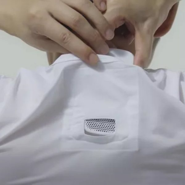 Tişört yakasındaki minik bir cebe sığabilen ve kişinin vücut yüzey sıcaklığını 23 dereceye kadar düşürebilen giyilebilir klima, aynı zamanda kış aylarında kullanılması için ısıtıcı mod ile birlikte geliyor.