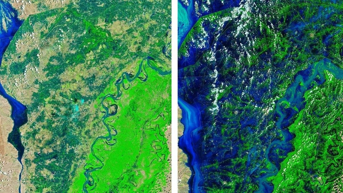 Üçte biri suyla kaplanan ülkedeki altyapı hasarının 10 milyar dolar olduğu belirtiliyor. Yıkıma yol açan felaket, uyduya yansıdı.