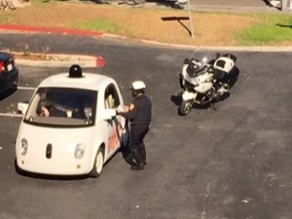 60 km'den daha az hızlı sürülmesi yasak olan yolda 40 kilometreyle gitmekte olan Google'ın aracını, trafiği tehlikeye soktuğu gerekçesiyle durduran polis, muhatap alacak bir sürücü bulamaması nedeniyle ne yapacağını bilemedi.