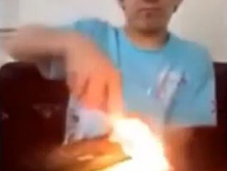Tornavida ile tabletinin içini açmak isteyen genç önce kendini yaralıyor ama yine de pes etmeyerek devam ediyor. Tabletin içini güç bela açan genç, devreleri yakarak tamir işini başarısız bir şekilde sonlandırmış oluyor ve sonunda tablet alev alıyor.