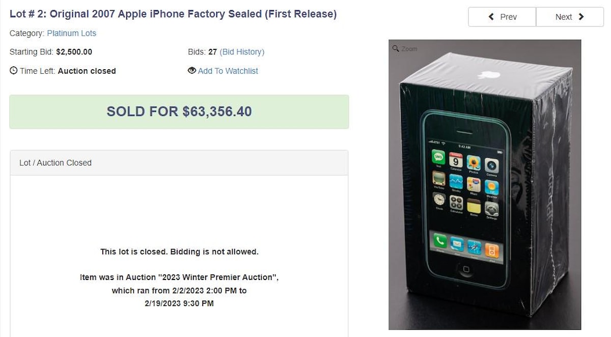 2007'den beri kutusu açılmamış iPhone, açık artırmada 63 bin dolara (yaklaşık 1 milyon 190 bin Türk Lirası) alıcı buldu. LCG Auctions tarafından düzenlenen açık artırmada açılış 2 bin 500 dolarla yapılmıştı.