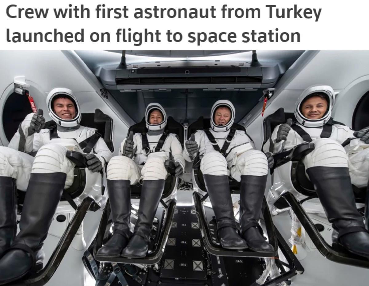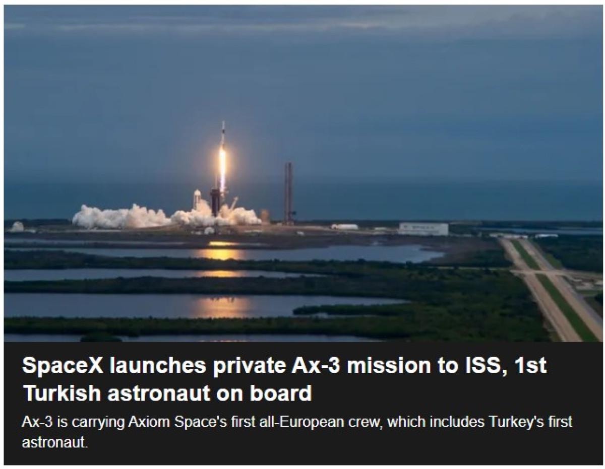Haberde, "Ax-3, Axiom Space'in, aralarında Türkiye'nin ilk astronotunun da bulunduğu, tamamı Avrupalılardan oluşan ilk mürettebatını taşıyor." bilgisi paylaşıldı.