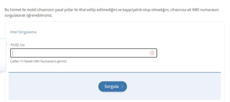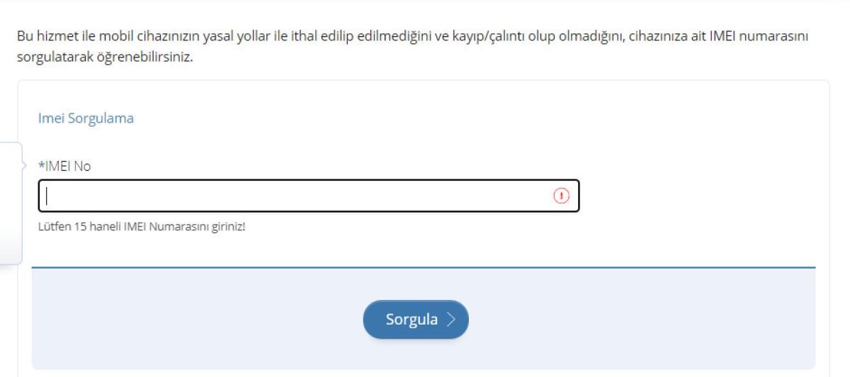 e-Devlet IMEI sorgulama sayfasına girin ve ilgiyi yere IMEI numaranızı yapıştırarak sorgulatın.