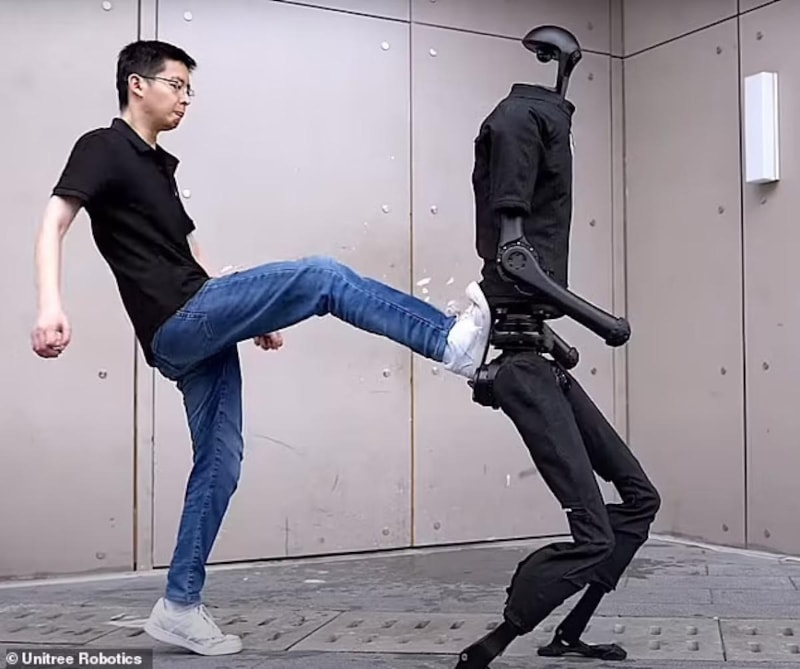 Tanıtım videosunda, Unitree'den bir mühendisin H1'i sokakta yürürken tekmelemeye çalıştığı, başarısız olduğu ve robotun her seferinde dengesini yeniden kazandığı görülüyor.