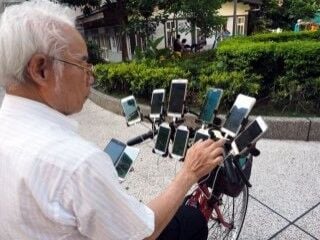 Tayvan'da bisikletine taktığı 11 telefonla günde 20 saat artırılmış gerçeklik oyunu Pokemon Go oynayan 70 yaşındaki bir kişi, sosyal medyada viral oldu.