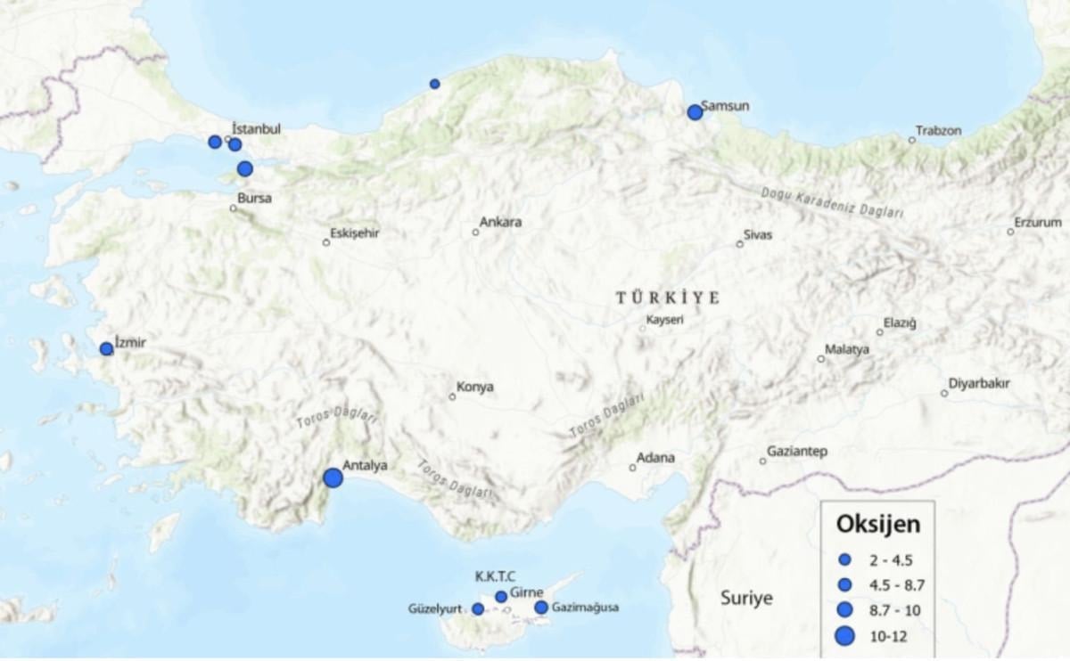 Raporda, deniz pH durumunun uzun süre ölçüldüğü takdirde iklim değişiminin okyanus asitlenmesi etkisi konusunda da bilgi verici olacağına işaret edilerek, "Gündüz ölçülen oksijen değerleri, yüzey sularında beklendiği üzere üst seviyesinde 6-7 mg/L olduğu görülmüştür." ifadelerine yer verildi.
