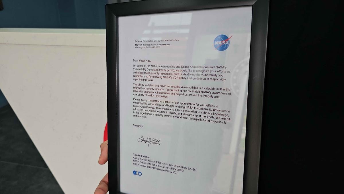 NASA bu raporu inceledi ve geçerli bir zafiyet olabileceğine karar verdi. Ben de yaklaşık 3 aylık süren süreçte NASA'ya ek bilgiler gönderdim. Kendi istedikleri doğrultuda çalışmalar yaptım. NASA'nın zafiyet kapatma aşamasına aslında yardım ettim diyebiliriz" diye konuştu.