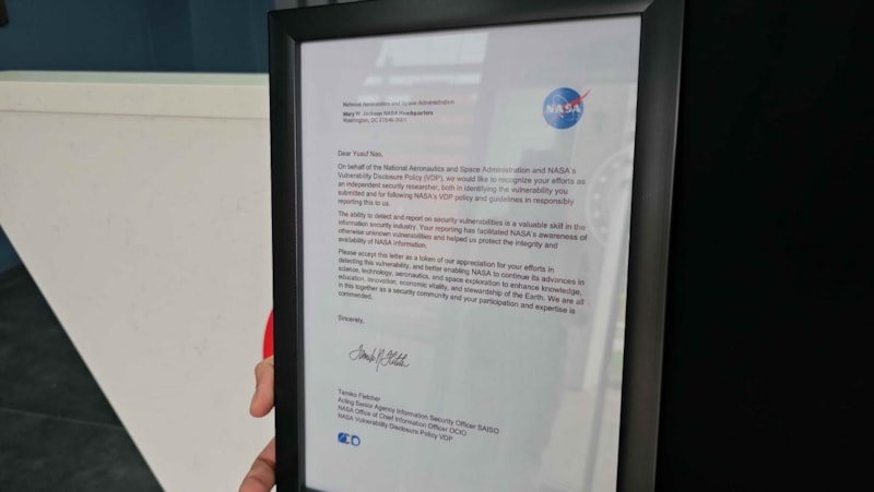 Zonguldak Bülent Ecevit Üniversitesi (BEUN) Bilgisayar Mühendisliği Bölümü Öğrencisi Yusuf Nas, NASA'nın kullanıcı sisteminde kritik bir güvenlik zafiyeti tespit edip kapatılmasına katkı sağlaması üzerine takdir mektubu ile ödüllendirilerek onur listesine dahil edildi.