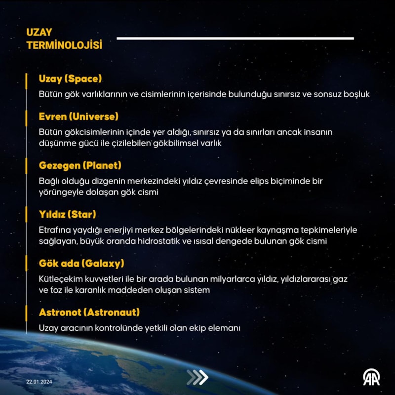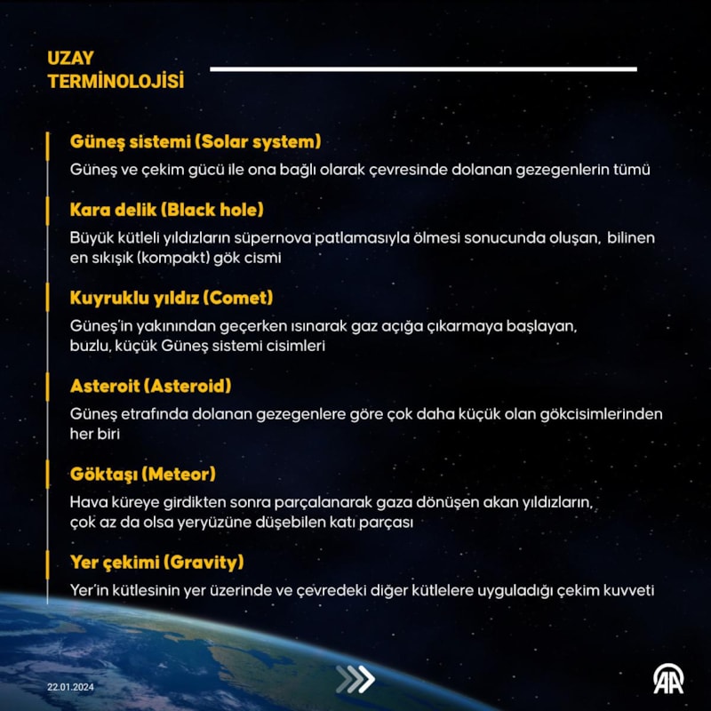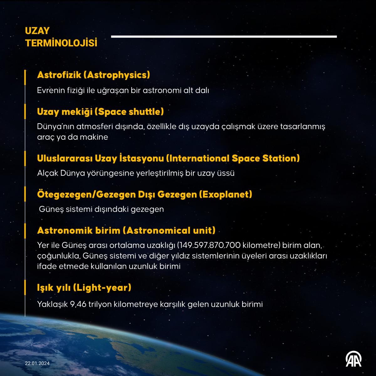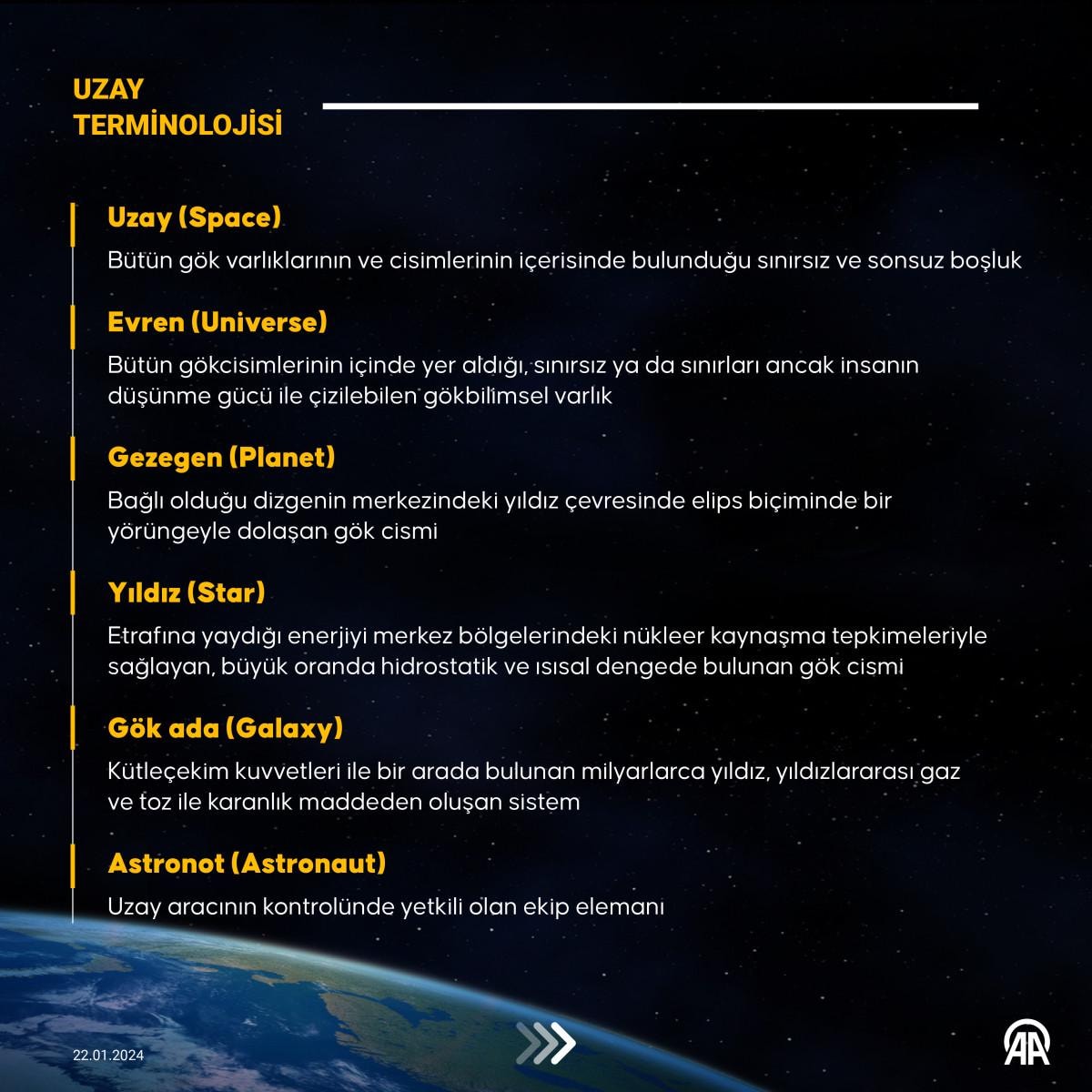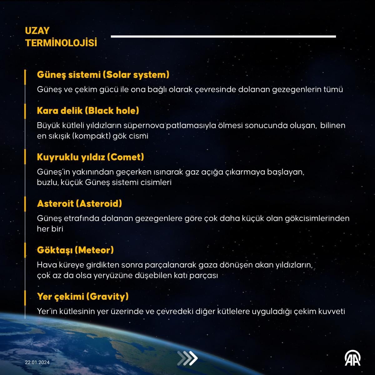 Türkiye'nin uzay yolculuğunun başlamasıyla günlük hayatta sıklıkla karşılan uzay kavramları derlendi.