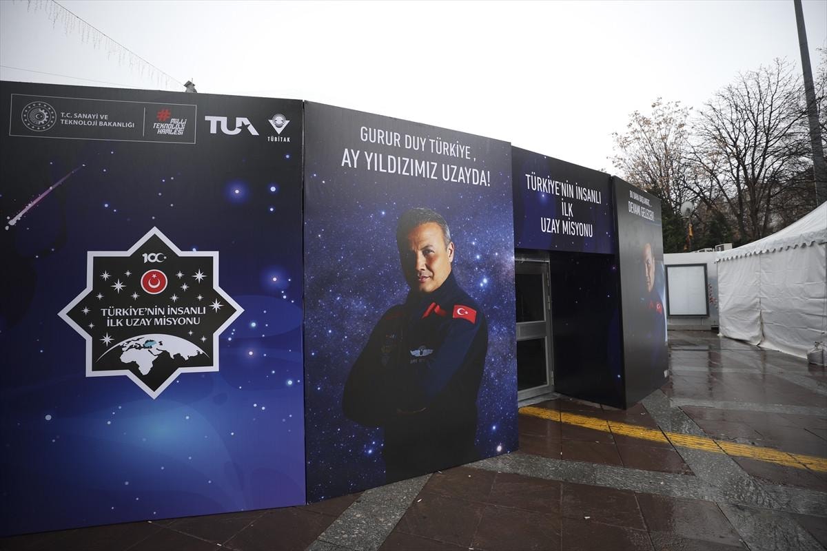 Alanın etrafına Alper Gezeravcı’nın fotoğrafları, Sanayi ve Teknoloji Bakanlığı, Türkiye Uzay Ajansı, Milli Teknoloji Hamlesi ve Türkiye’nin ilk insanlı uzay misyonunun logoları yerleştirildi.