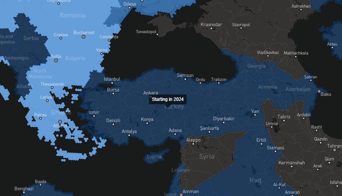 SpaceX, Starlink haritasını güncelledi ve hizmetin geliş tarihi olarak 2024'ü işaret etti.