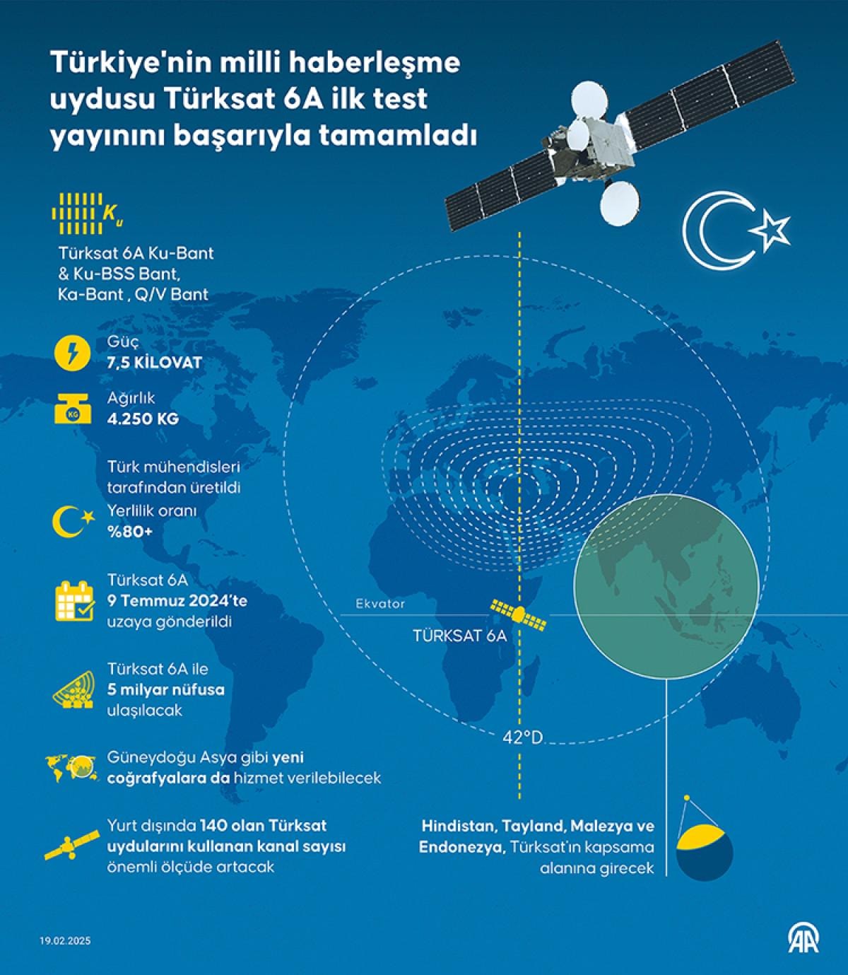 Bakan Kacır, açıklamasında, “Milli Teknoloji Hamlesi’nin en büyük projelerinden biri olan ilk yerli haberleşme uydumuz Türksat 6A, kritik bir eşiği daha geride bıraktı. İlk test yayını başarıyla tamamlandı.” ifadelerine yer verdi.