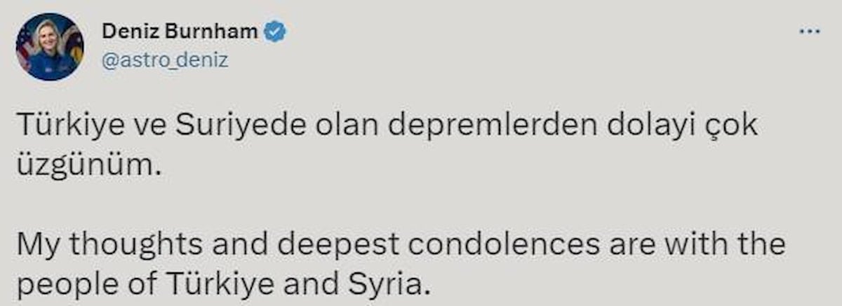 Öte yandan, NASA astronot adayı Deniz Burnham, Türkçe ve İngilizce paylaştığı mesajında, üzüntüsünü dile getirdi: